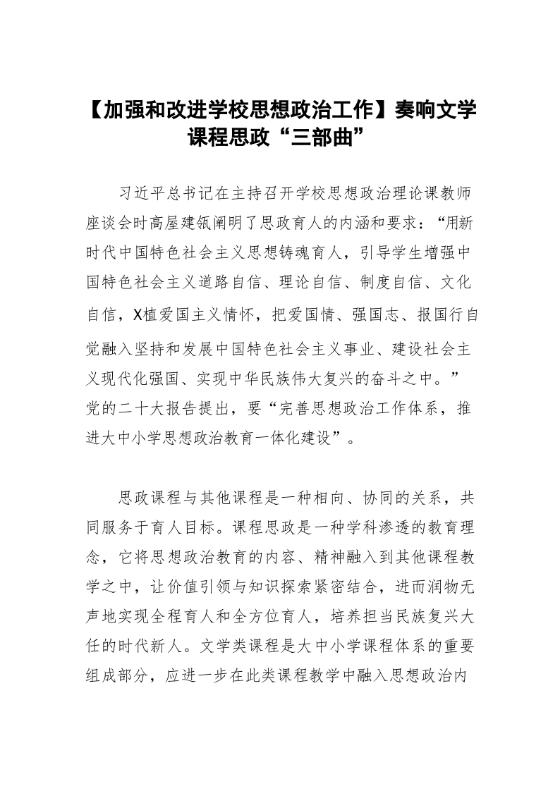 / 【加强和改进学校思想政治工作】奏响文学课程思政“三部曲”