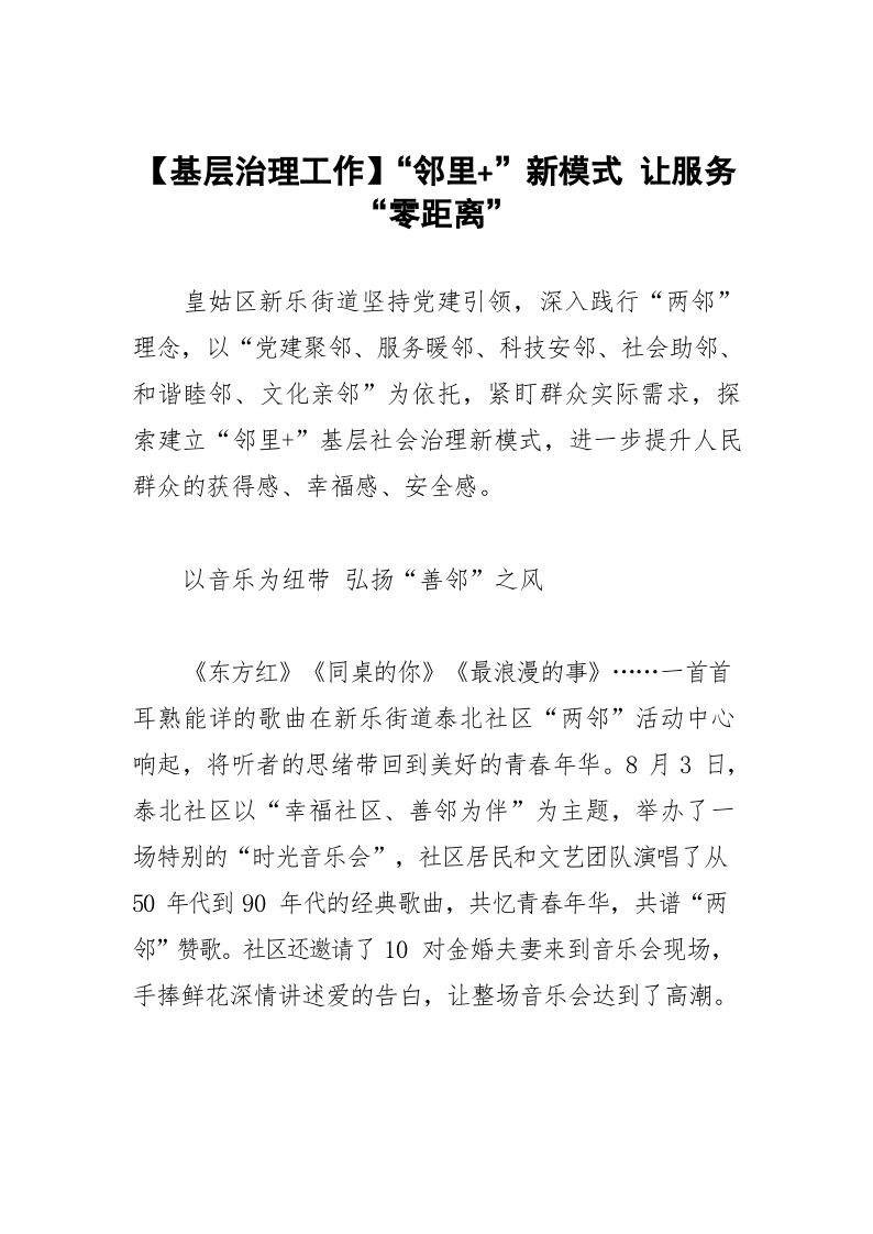 / 【基层治理工作】“邻里”新模式 让服务“零距离”