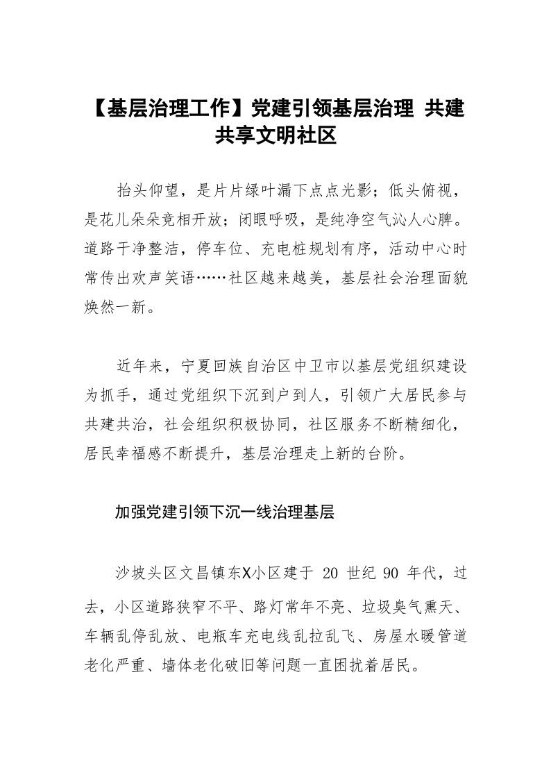 / 【基层治理工作】党建引领基层治理 共建共享文明社区