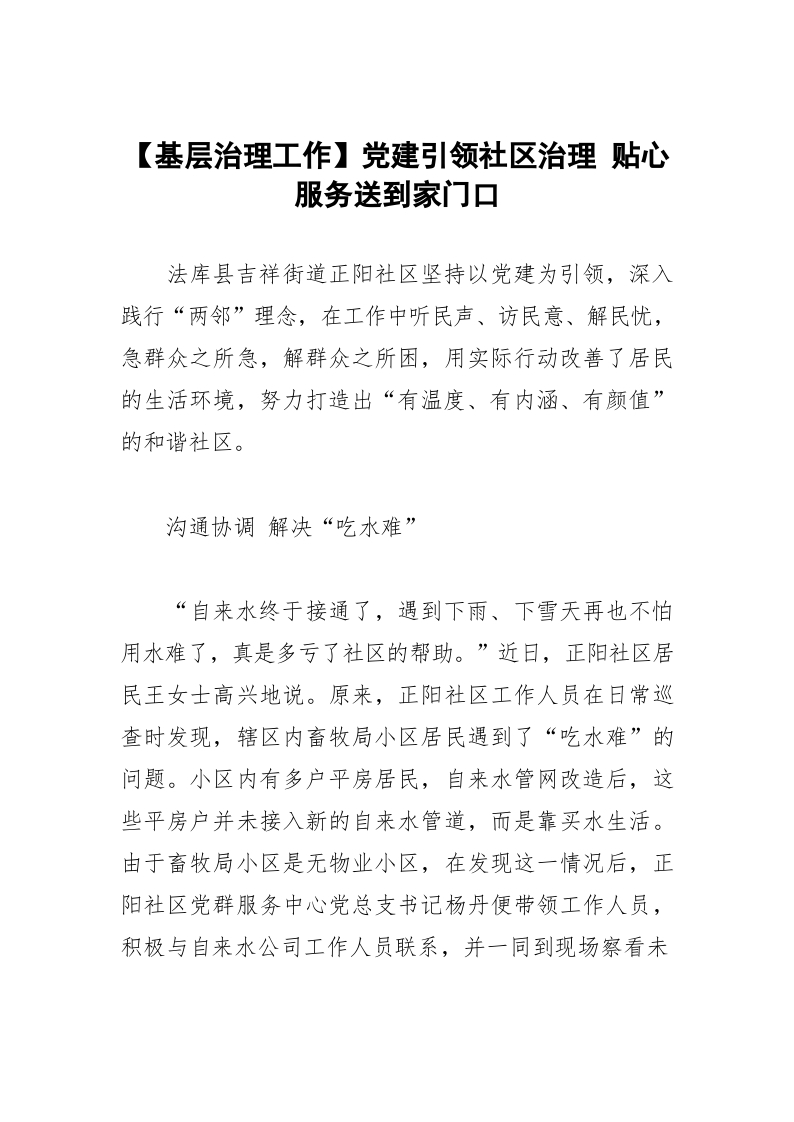 / 【基层治理工作】党建引领社区治理 贴心服务送到家门口