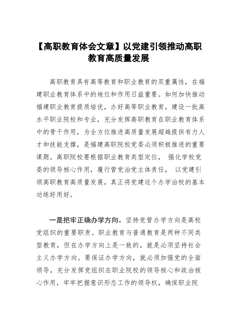 / 【高职教育体会文章】以党建引领推动高职教育高质量发展