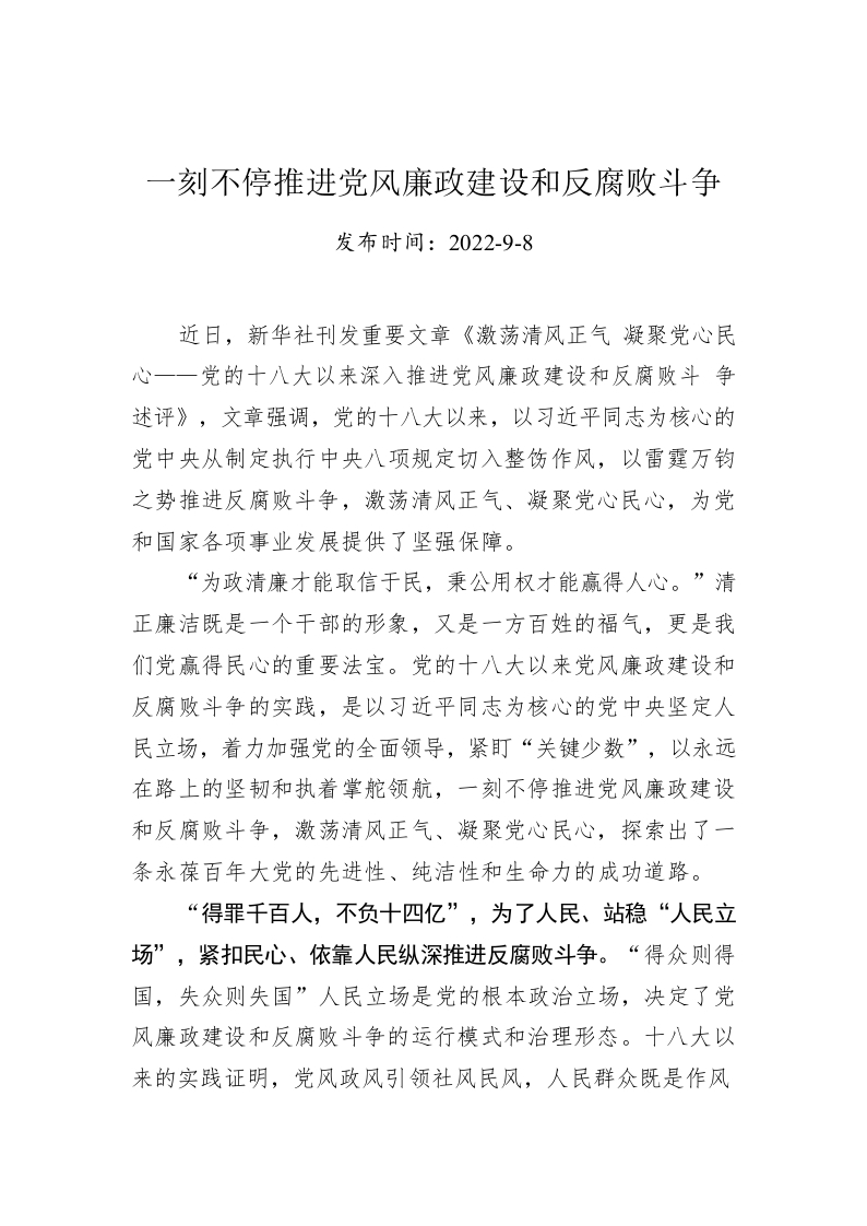 / 一刻不停推进党风廉政建设和反腐败斗争
