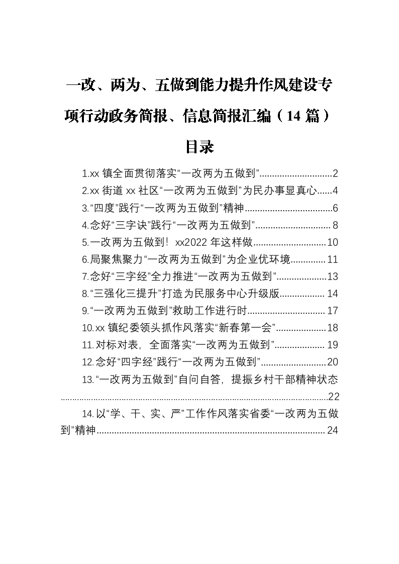 / 一改、两为、五做到能力提升作风建设专项行动政务简报、信息简报汇编(14篇)