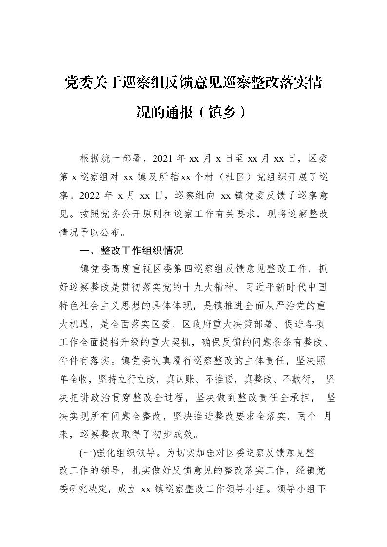 / 党委关于巡察组反馈意见巡察整改落实情况的通报(镇乡)