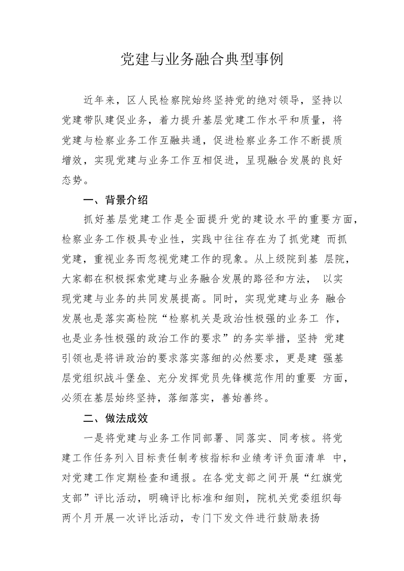 党建与业务融合事迹材料