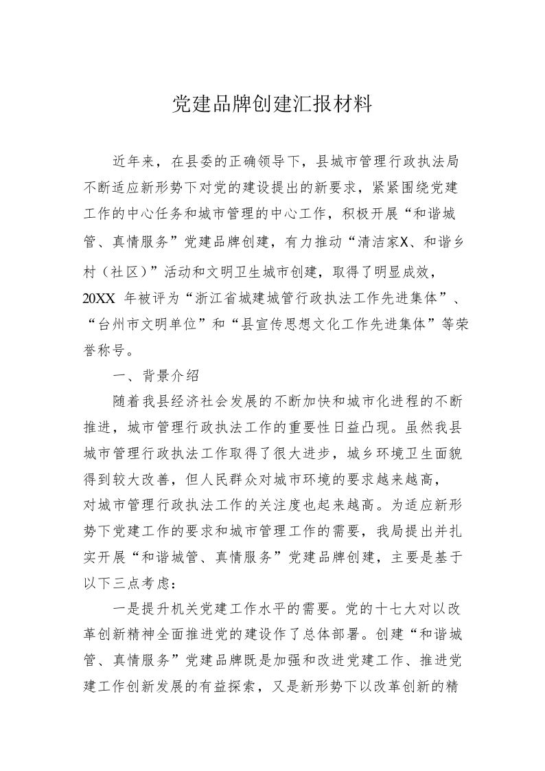 党建品牌创建汇报材料2篇