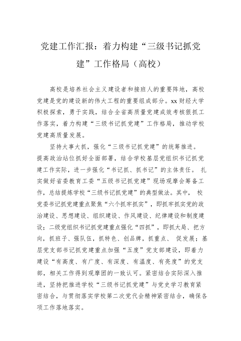 / 党建工作汇报:着力构建“三级书记抓党建”工作格局(高校)