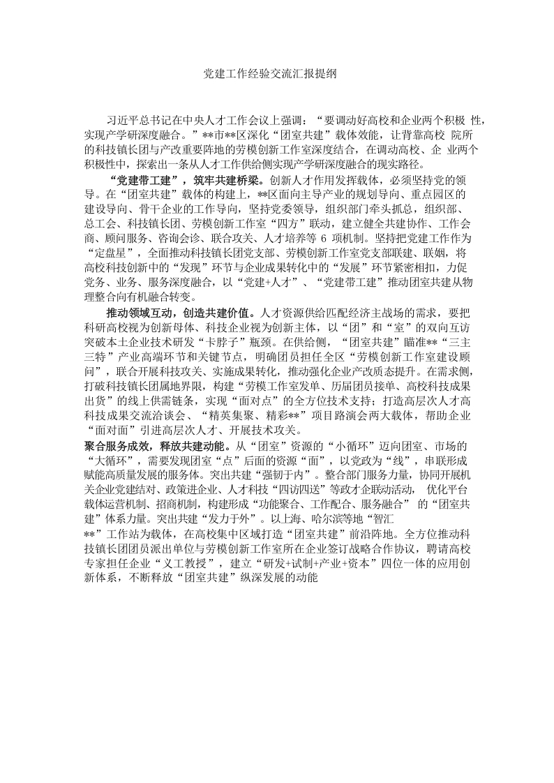 / 党建工作经验交流汇报提纲