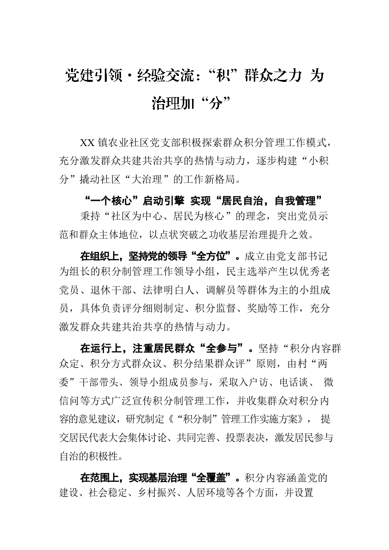 党建引领·经验交流:“积”群众之力 为治理加“分”