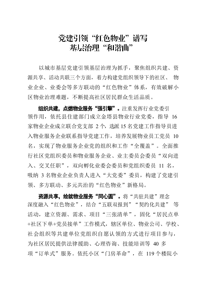 / 党建引领“红色物业”谱写基层治理“和谐曲”(社区党建)