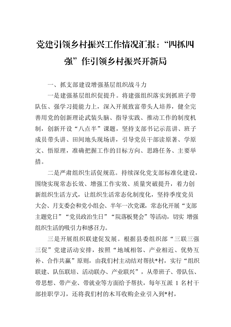 党建引领乡村振兴工作情况汇报:“四抓四强”作引领乡村振兴开新局