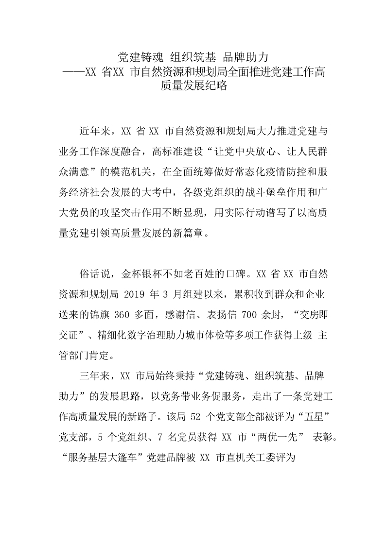 / 党建铸魂 组织筑基 品牌助力——XX局全面推进党建工作高质量发展纪略
