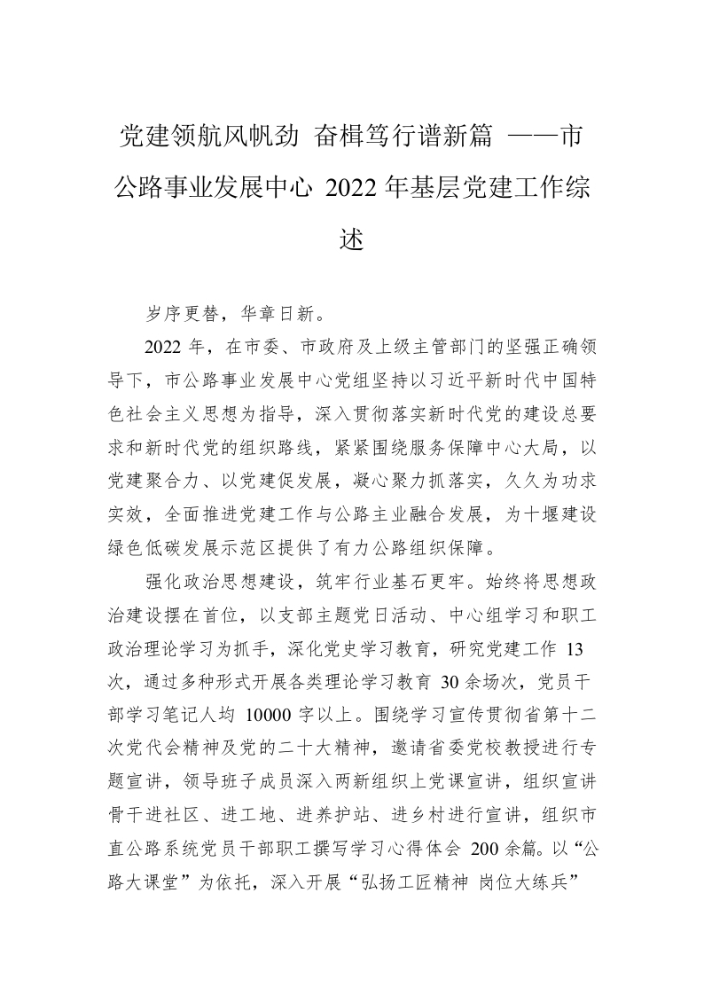 / 党建领航风帆劲 奋楫笃行谱新篇 ——市公路事业发展中心2022年基层党建工作综述(20230117)
