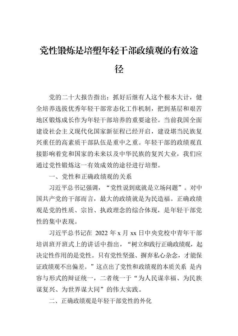 / 党性锻炼是培塑年轻干部政绩观的有效途径