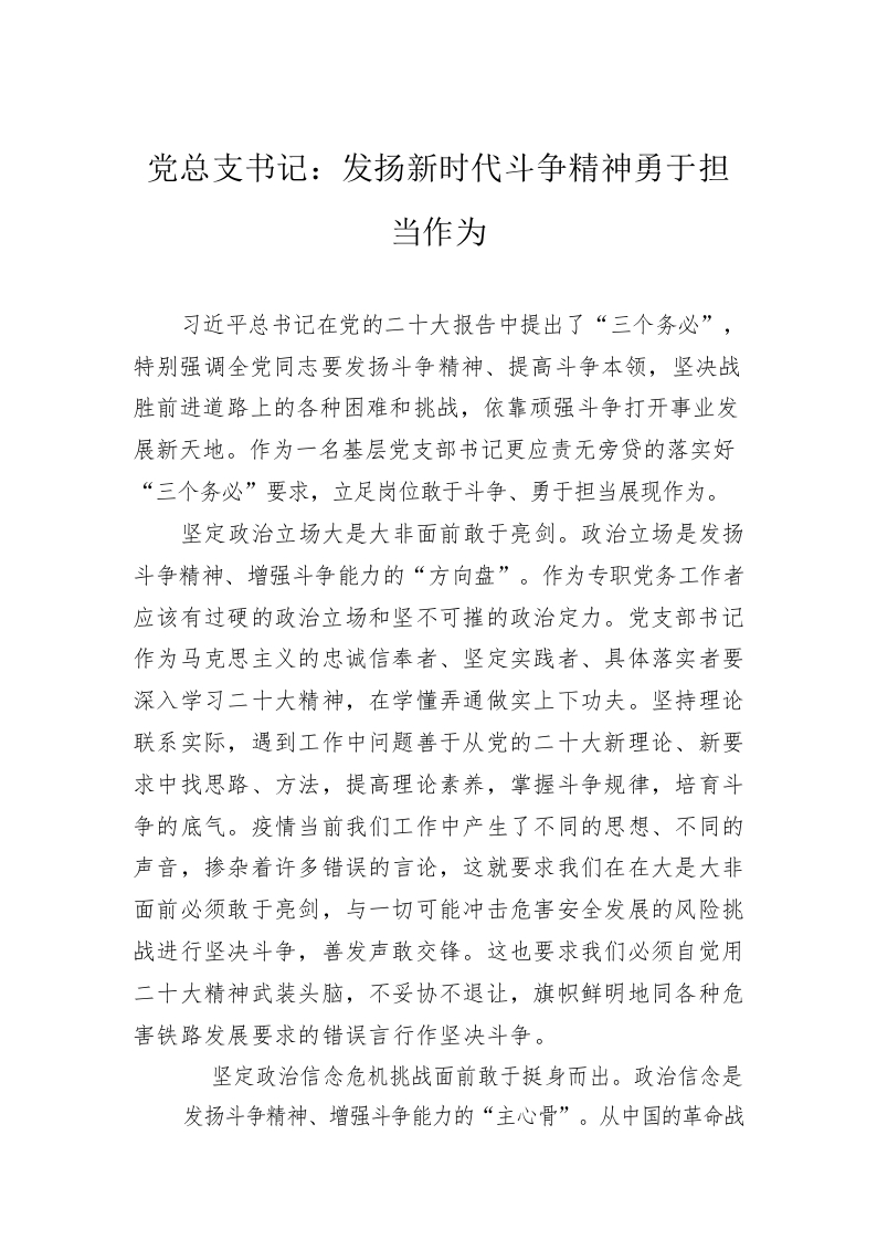 / 党总支书记:发扬新时代斗争精神勇于担当作为(20221222)