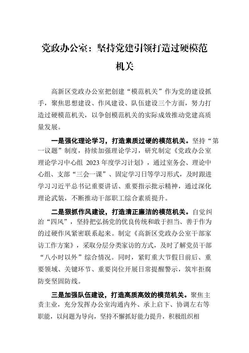 / 党政办公室:坚持党建引领打造过硬模范机关(20230725)