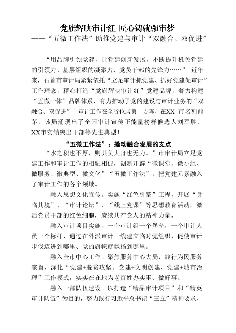/ 党旗辉映审计红 匠心铸就强审梦——“五微工作法”助推党建与审计“双融合、双促进”
