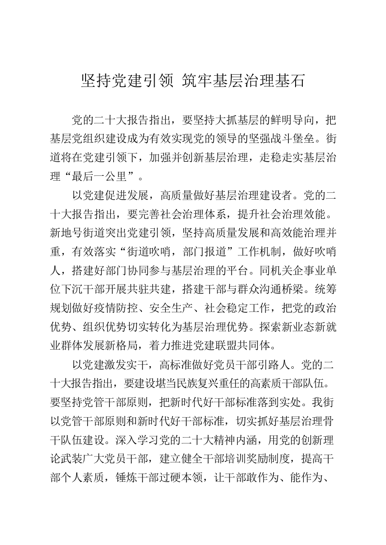 / 党的二十大报告有感 党建引领 筑牢基层治理基石