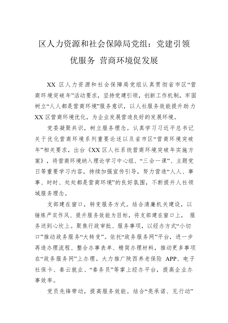 区人力资源和社会保障局党组:党建引领优服务 营商环境促发展(20230510)