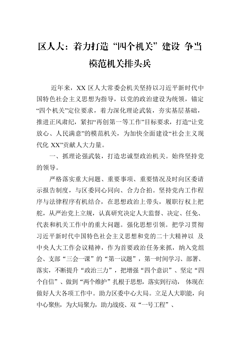 / 区人大:着力打造“四个机关”建设 争当模范机关排头兵