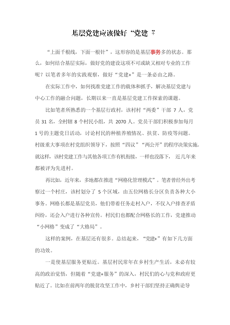 / 基层党建应该做好“党建”