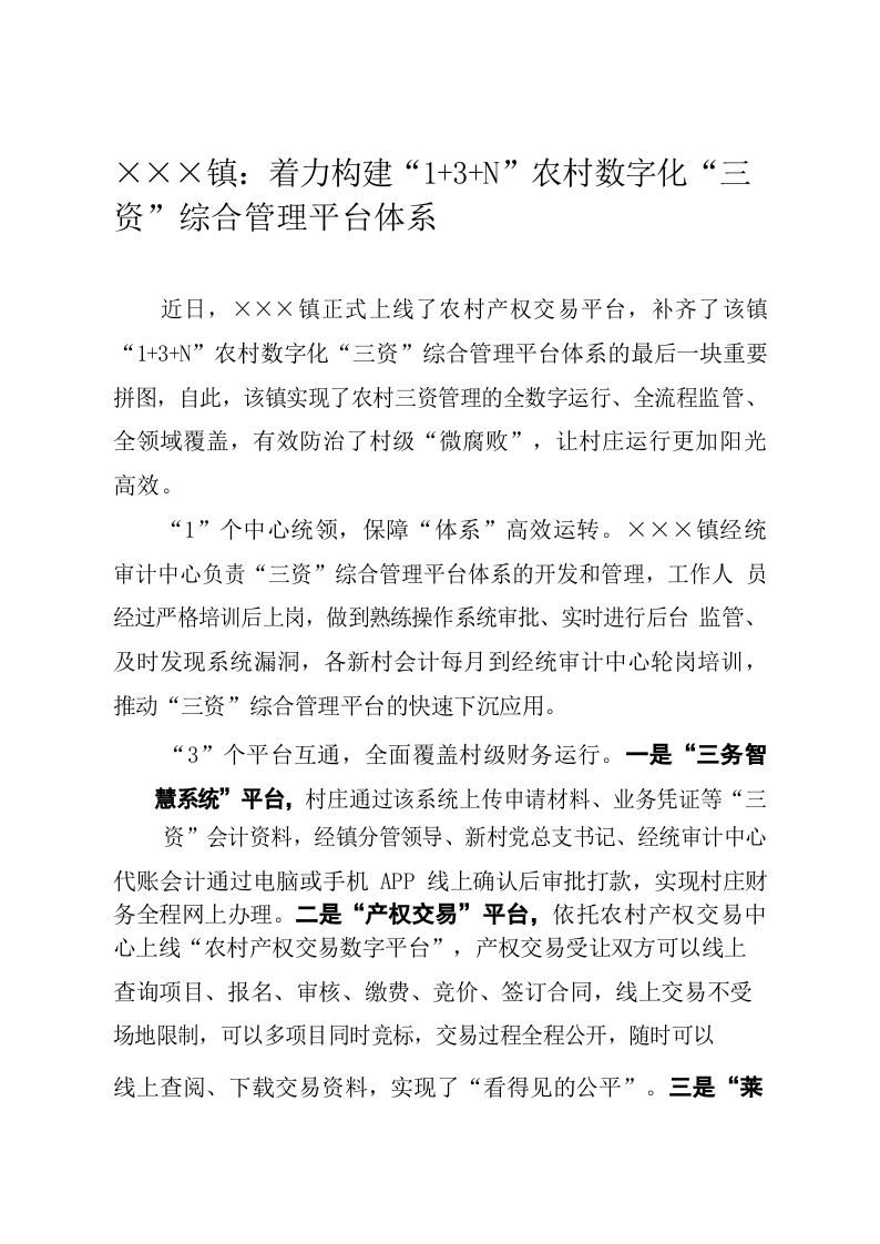 / 夏格庄镇着力构建“13N”农村数字化“三资”综合管理平台体系
