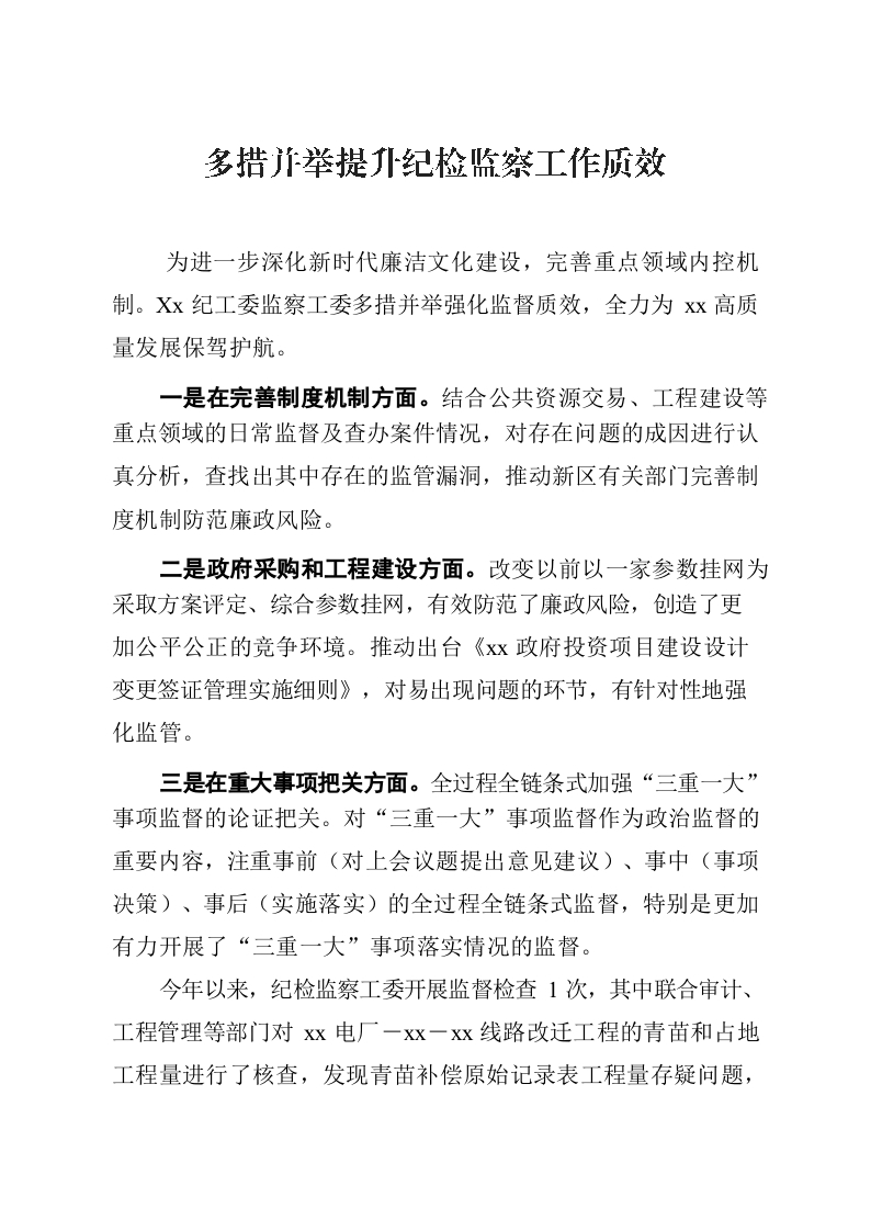 / 多措并举提升纪检监察工作质效