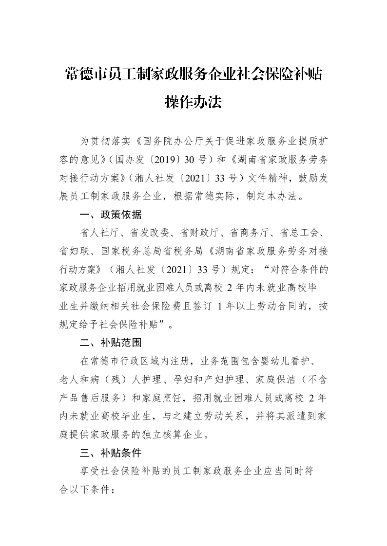 / 常德市员工制家政服务企业社会保险补贴操作办法