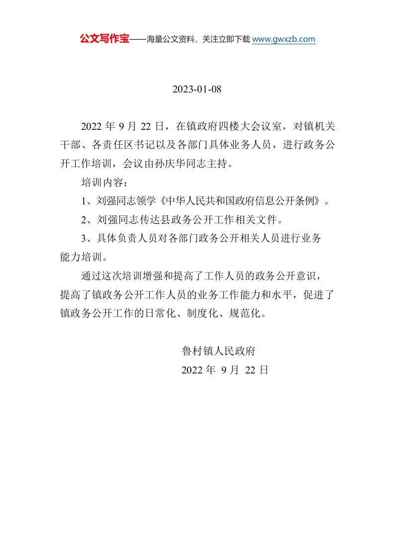 / 鲁村镇政务公开培训工作简报