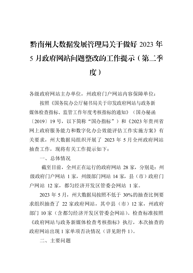 / 黔南州大数据发展管理局关于做好2023年5月政府网站问题整改的工作提示(第二季度)