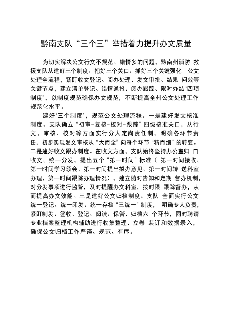 / 黔南支队多措并举提升办文工作质效