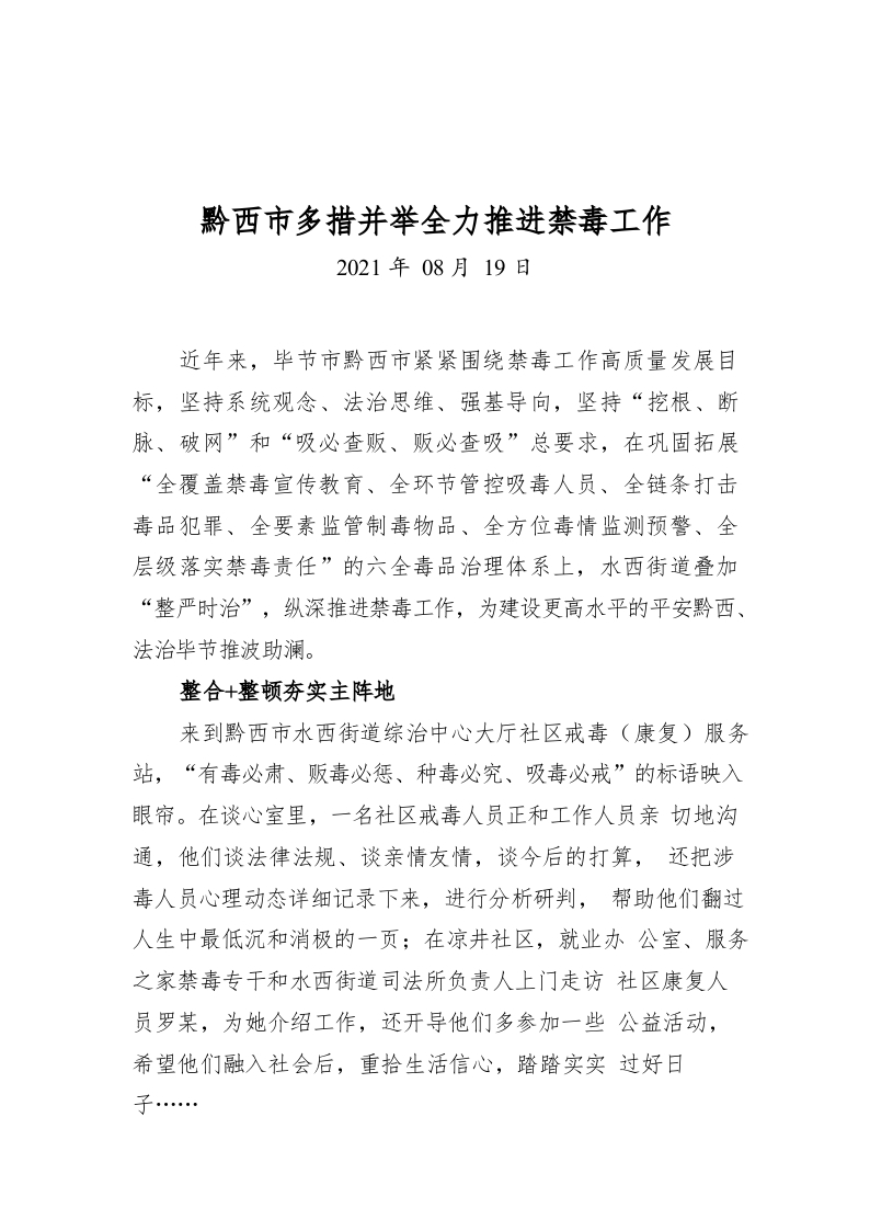 / 黔西市多措并举全力推进禁毒工作