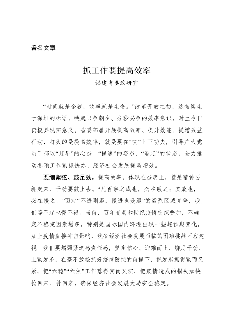 / (署名文章)福建省委政研室:抓工作要提高效率