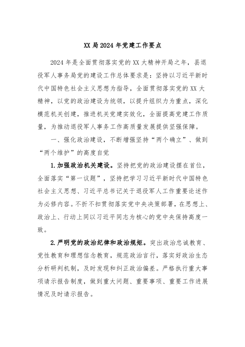 / XX局2024年党建工作要点