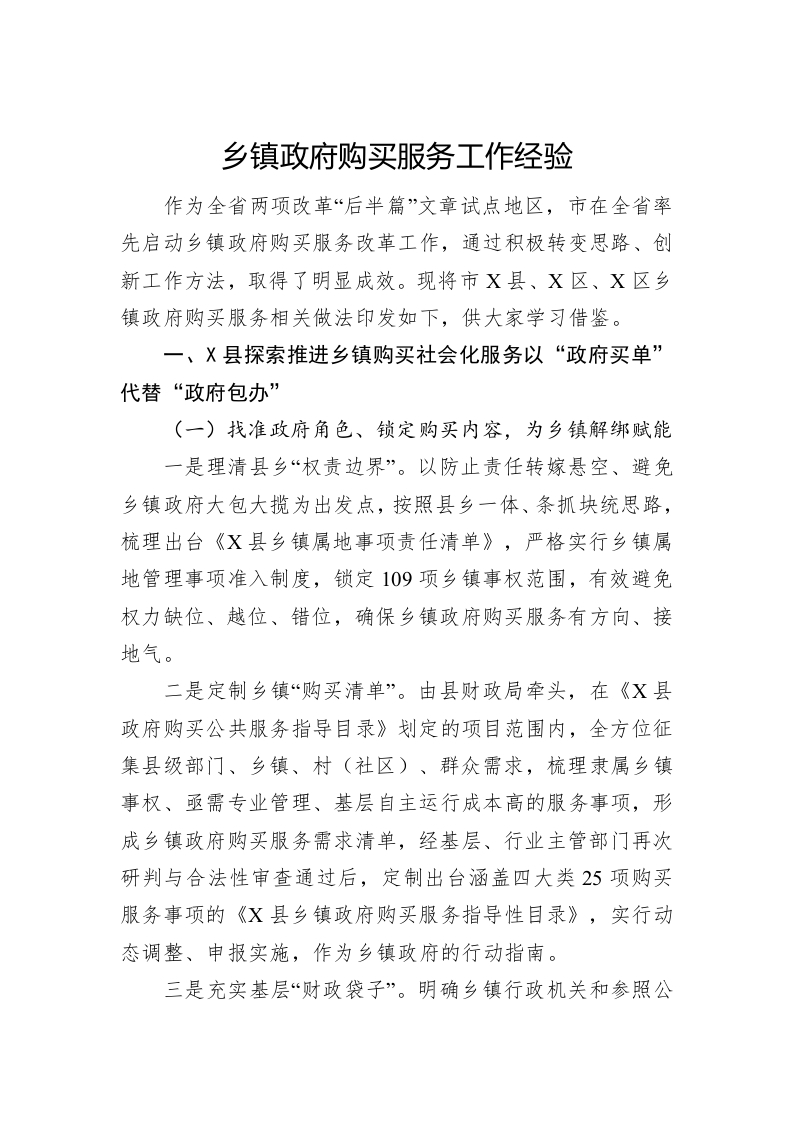 / 乡镇政府购买服务工作经验