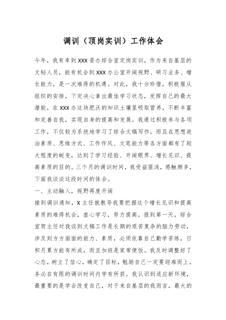 / 调训(顶岗实训)工作体会