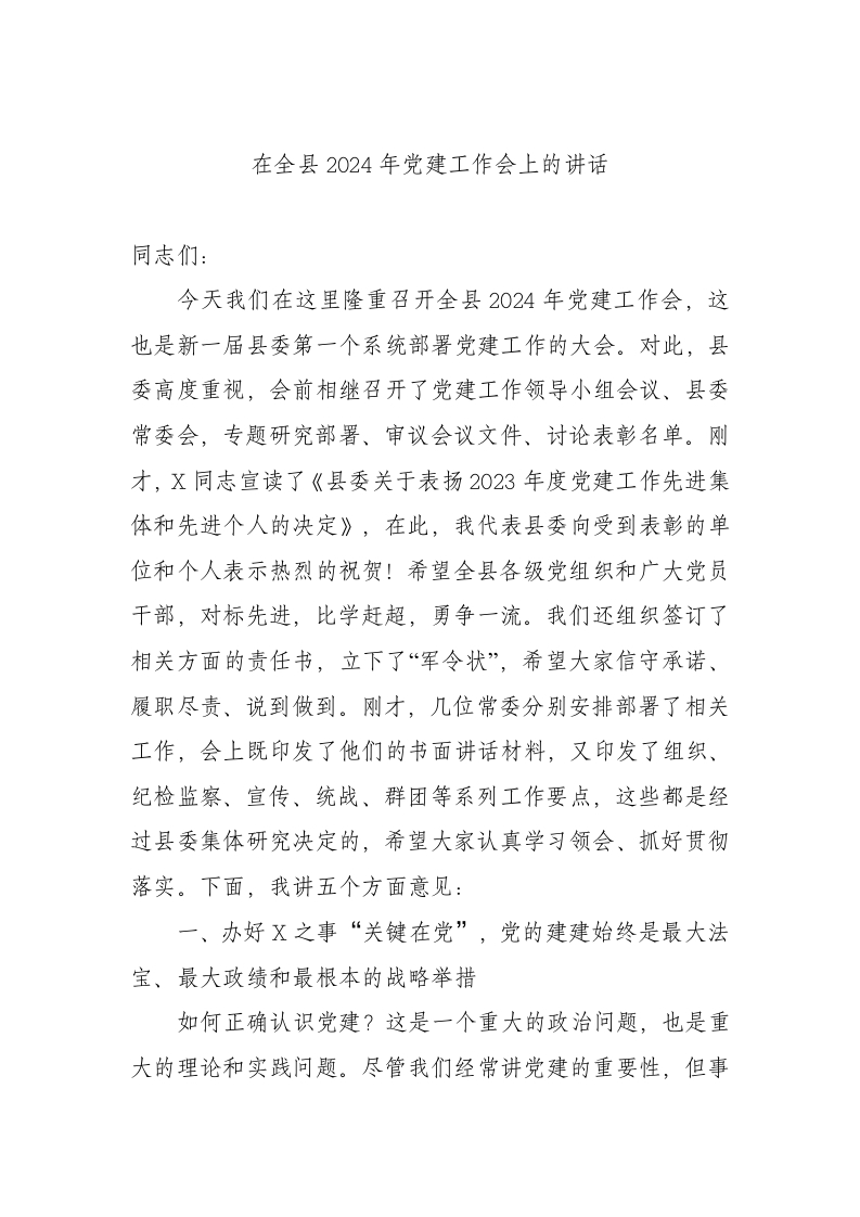 在全区2024年度党建(组织、宣传、统战)工作会议上的讲话稿