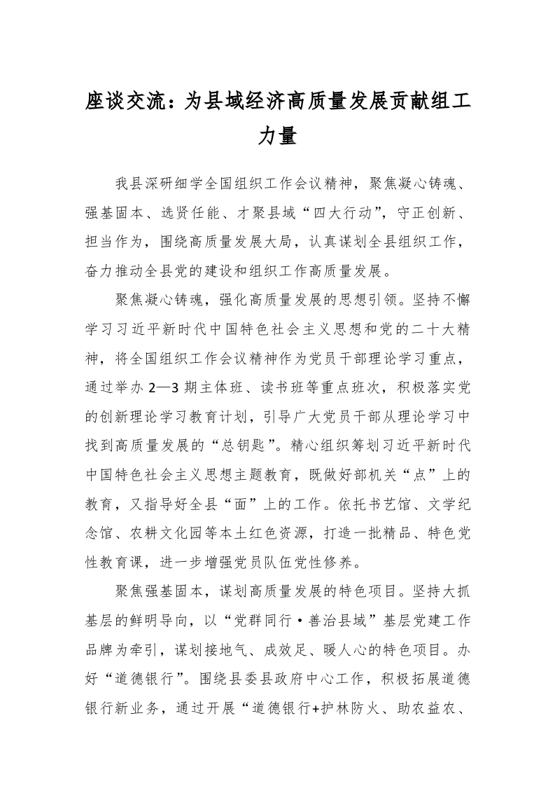 / 座谈交流:为县域经济高质量发展贡献组工力量