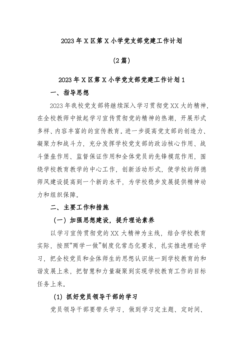 / (2篇)2023年区第小学党支部党建工作计划