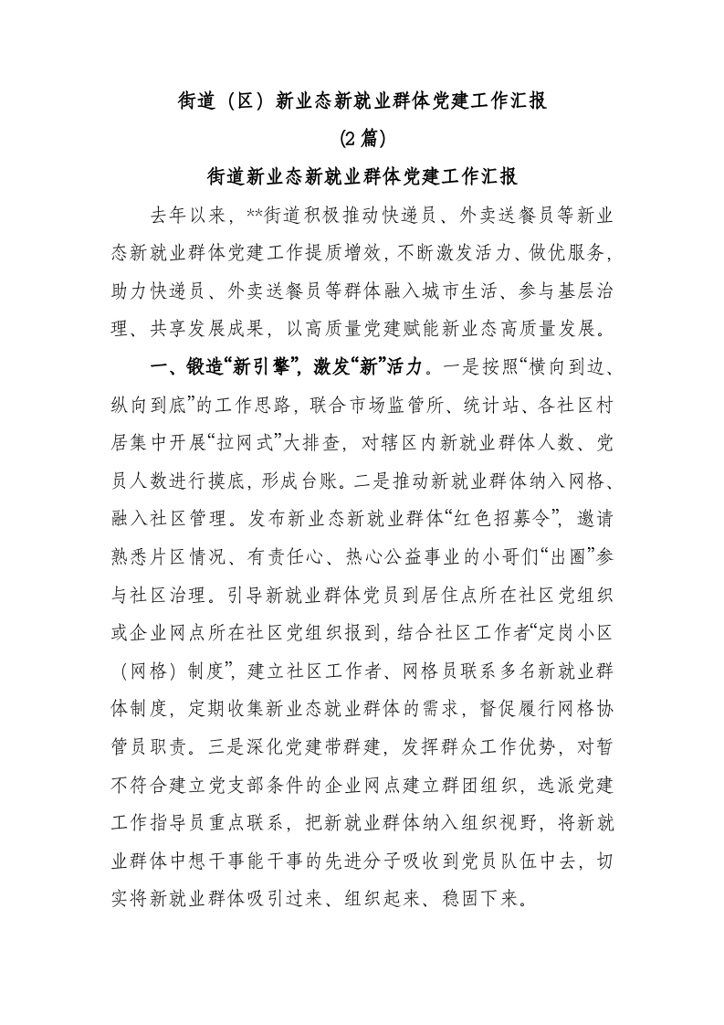 / (2篇)街道(区)新业态新就业群体党建工作汇报