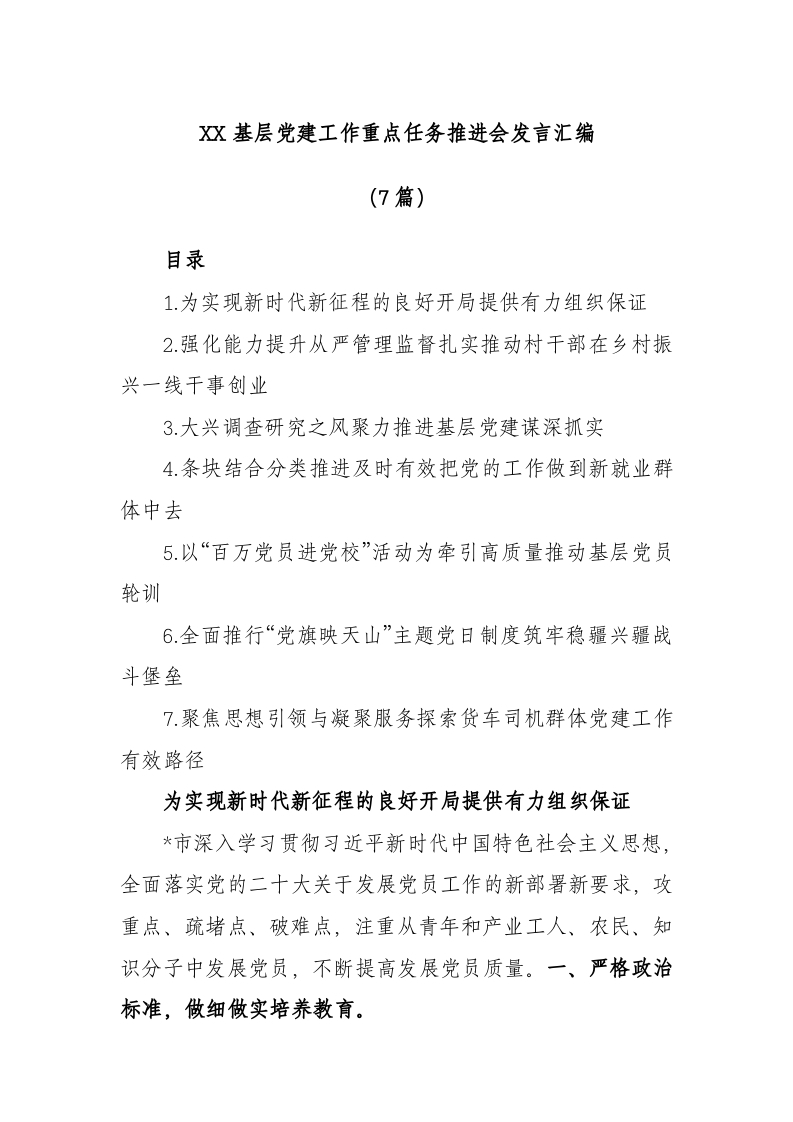 / (7篇)基层党建工作重点任务推进会发言汇编