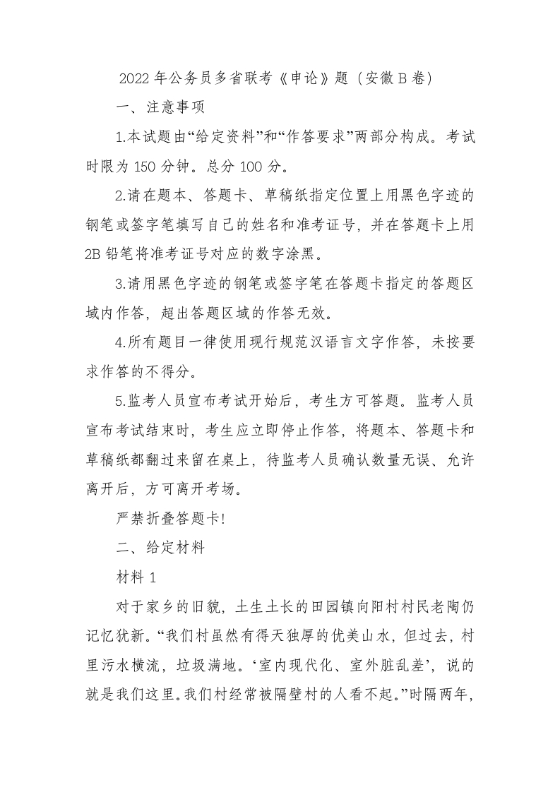 / 2022年公务员多省联考《申论》题(安徽B卷)