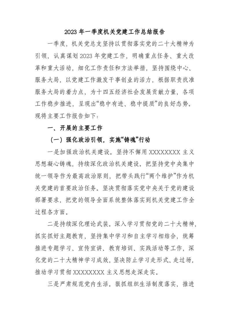 2023 年一季度机关党建工作总结报告