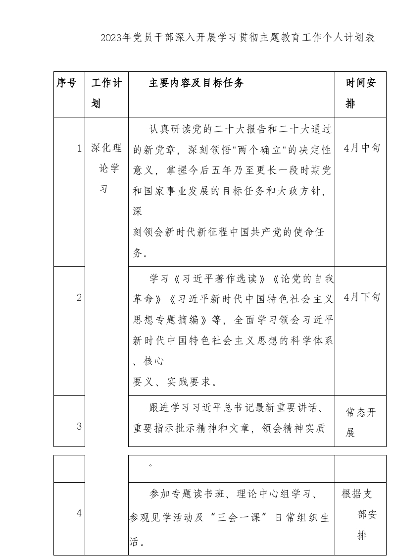 / 2023年党员干部深入开展学习贯彻XX教育工作个人计划表