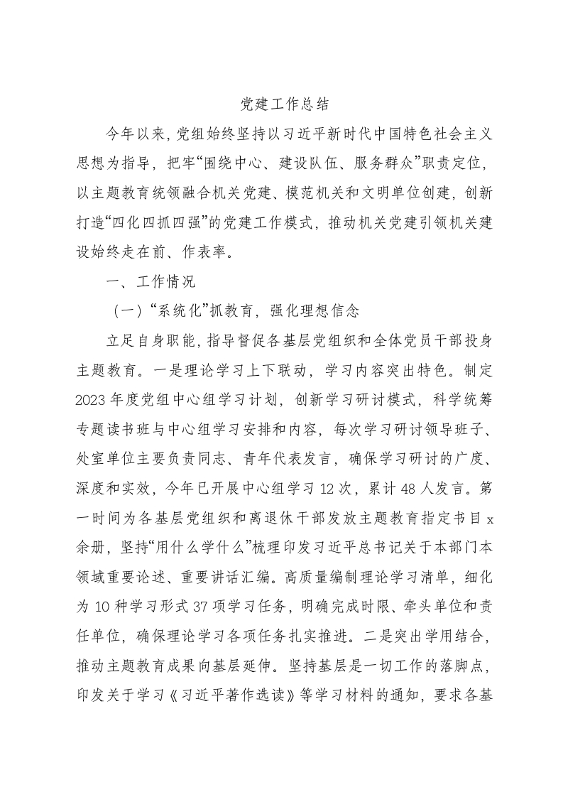 2023年党建工作总结4500字