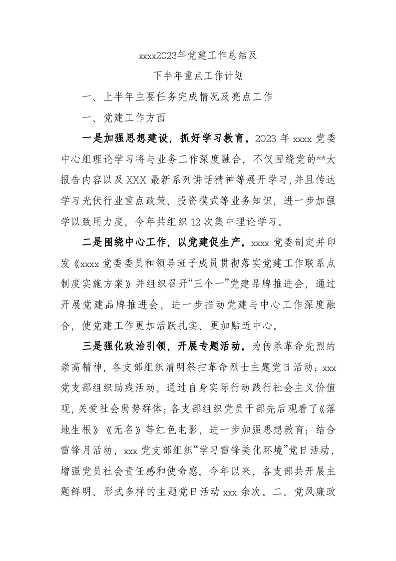 / 2023年党建工作总结及下半年重点工作计划