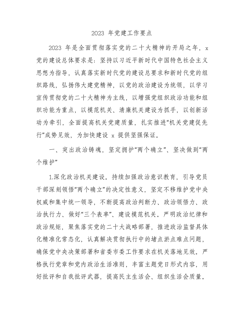 2023年党建工作要点3300字