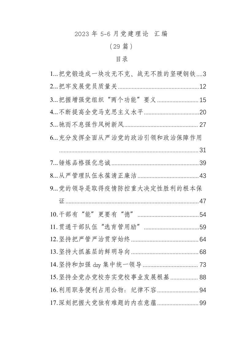 / 2023年党建理论文稿材料汇编(29篇)