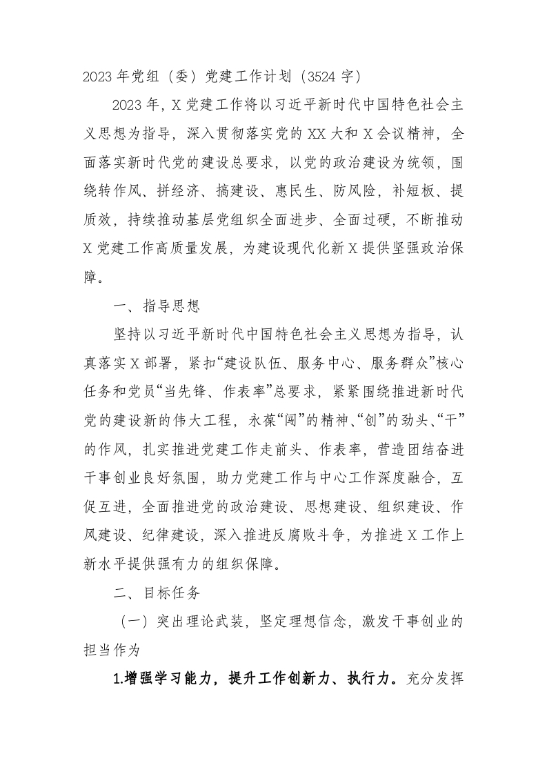 2023年党组(委)党建工作要点
