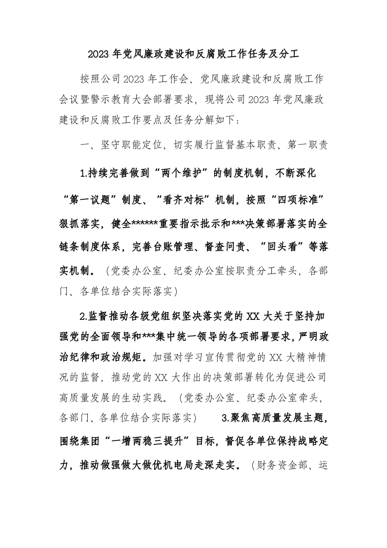 / 2023年党风廉政建设和反腐败工作任务及分工